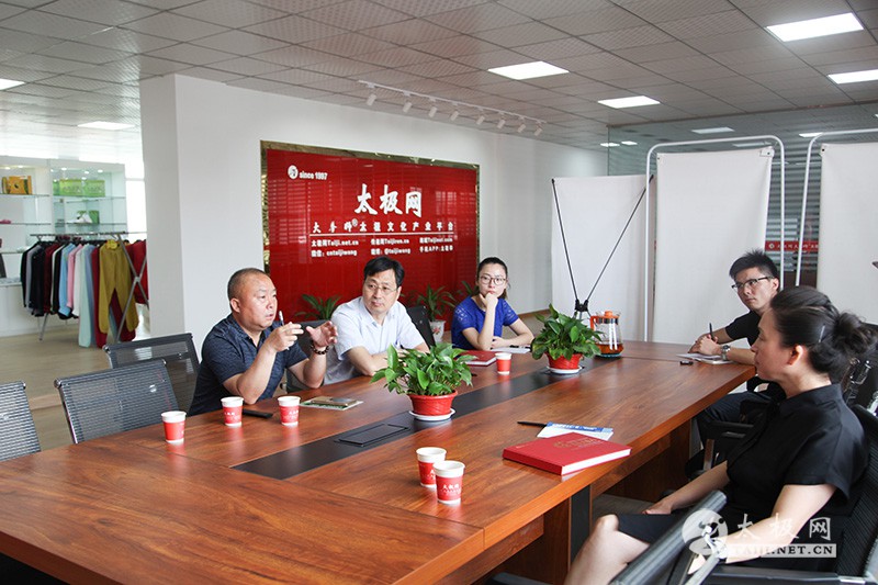 太极网创始人刘洪奇、执行总编刘明菁、运营总监李超等接待了李美玲一行,并汇报了太极网近期的工作情况以及在太极拳传播及产业布局上的平台构想和工作计划。刘洪奇在工作汇报中就太极网二十年来在温县县委县政府的正确领导下传播推广太极文化、建设太极拳传承谱系工程以及围绕太极拳文化搭建大拳师太极文化产业平台的工作成果,利用先进的互联网技术构建太极网PC矩阵、微信公众平台矩阵、自媒体矩阵等,首创太极拳线上比赛“国际太极拳网络视频大赛”以及开发首个专业“太极拳”手机APP等相关工作进行了详实的汇报和阐述。