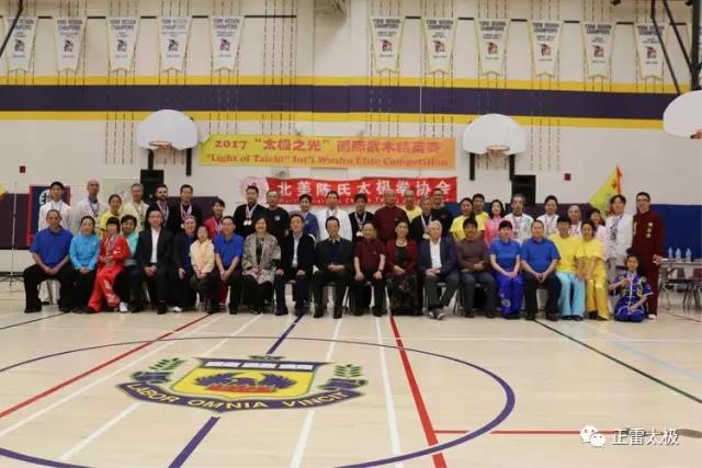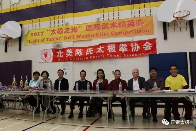由北美陈氏太极拳协会、河南陈正雷太极文化有限公司共同主办,严志刚武术学校与加拿大河北协会共同承办,美国陈氏太极拳促进会、加东陈氏太极拳协会与加拿大华人同乡会联合总会协办的 "2017太极之光国际武术精英赛" 邀请到众多国内外重量级嘉宾,有原中国武术协会主席、中国武术研究院院长张耀庭及夫人,陈氏太极拳第十一代嫡宗传人、中国武术九段、中国国家武术研究院·专家委员会专家陈正雷及夫人路丽丽,前安省雷湾市市长、前加拿大国会议员、北美陈氏太极拳协会会长Ken Boshcoff,中国武术九段、中国国家武术研究院·专家委员会委员陈顺安,Georgian College 针灸系主任Kimberly Hahn,陈氏太极拳第十二代嫡宗传人、中国武术七段陈斌,陈氏太极拳第十二代嫡宗传人、中国武术七段陈娟,陈氏太极拳第十二代传人、北美陈氏太极拳协会副会长彭友连,前加拿大新时代电台台长谢振汉。应邀出席开幕式的嘉宾还有加拿大同乡会联合总会执行会长杨申,加拿大北京协会会长杨宝凤,加拿大内蒙古同乡会会长庞一工,加拿大四川同乡会会长刘熹,北京协会副会长陈献、河北协会副会长张杰、李贺增、李晓玲等。