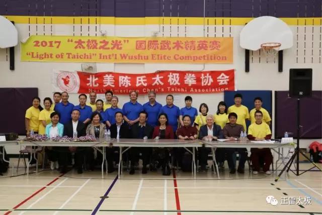由北美陈氏太极拳协会、河南陈正雷太极文化有限公司共同主办,严志刚武术学校与加拿大河北协会共同承办,美国陈氏太极拳促进会、加东陈氏太极拳协会与加拿大华人同乡会联合总会协办的 "2017太极之光国际武术精英赛" 邀请到众多国内外重量级嘉宾,有原中国武术协会主席、中国武术研究院院长张耀庭及夫人,陈氏太极拳第十一代嫡宗传人、中国武术九段、中国国家武术研究院·专家委员会专家陈正雷及夫人路丽丽,前安省雷湾市市长、前加拿大国会议员、北美陈氏太极拳协会会长Ken Boshcoff,中国武术九段、中国国家武术研究院·专家委员会委员陈顺安,Georgian College 针灸系主任Kimberly Hahn,陈氏太极拳第十二代嫡宗传人、中国武术七段陈斌,陈氏太极拳第十二代嫡宗传人、中国武术七段陈娟,陈氏太极拳第十二代传人、北美陈氏太极拳协会副会长彭友连,前加拿大新时代电台台长谢振汉。应邀出席开幕式的嘉宾还有加拿大同乡会联合总会执行会长杨申,加拿大北京协会会长杨宝凤,加拿大内蒙古同乡会会长庞一工,加拿大四川同乡会会长刘熹,北京协会副会长陈献、河北协会副会长张杰、李贺增、李晓玲等。