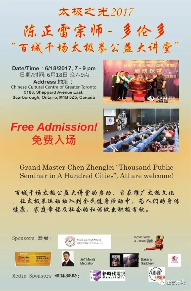 百城千场太极公益大讲堂 (免费参加)主讲:陈正雷宗师