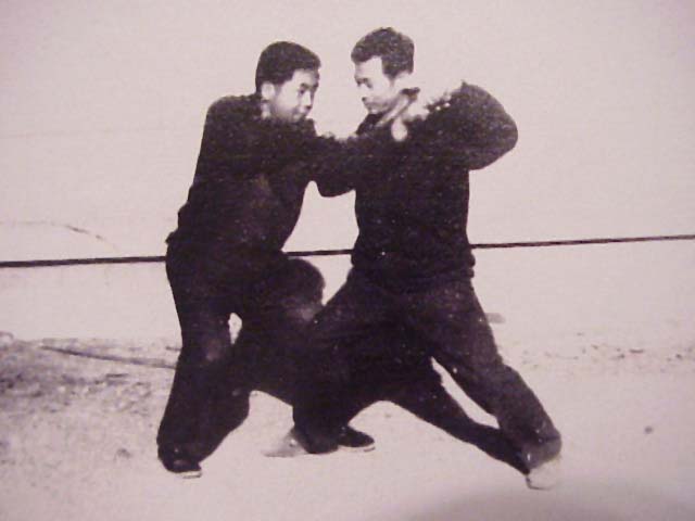 第四种方法叫捋。就是甲乙两个人把棚捋挤按四种方法套在一起,,手法与第三种的推法一样,与第三种推法不同的是;甲乙二人的前腿肚都要铺地,在地上盘旋,使裆内都有弹簧力,这个推法完全是叫下盘稳固腿上有力,这就是长兴公说的:培其根则枝叶自茂,润其源则流脉自长。这个方法就是培根润源的方法。这个方法推成功之后,特点表现为:两腿仆地犹顽石,下盘稳固定根基,裆内自有弹簧力,灵机一动鸟难飞。
