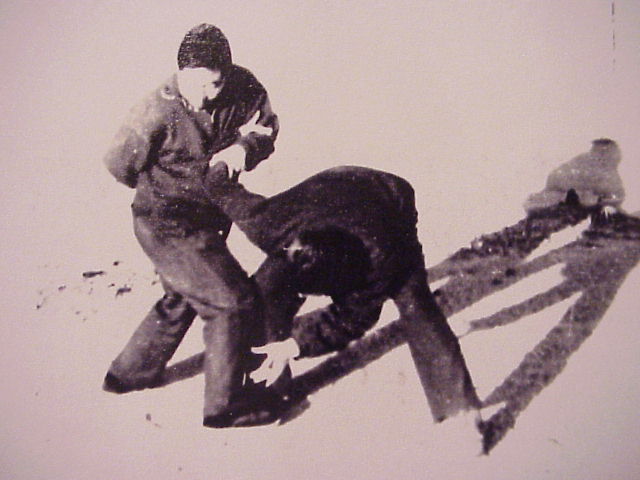 第二种姿势叫推手,甲乙两人对立,彼此两脚不动,甲用双手按乙胳膊,乙用棚法将甲滑空,乙再用两手按甲胳膊,甲用棚法将乙滑空。可以推得很长时间,啥时没有力气,啥时停下来,这个推手的方法完全杀走法,也就是滑空之法,两人推得功夫纯熟时,,推得身上比冰凌还滑,胳膊如棉花裹铁。两个人的内劲接连得如胶似漆,粘沾不散,这个功夫推的只有半个圈,只有一个按,一个棚,没有捋和挤。推得长久时特点表现:滑如冰凌,粘如胶,软如棉花,硬似铁。