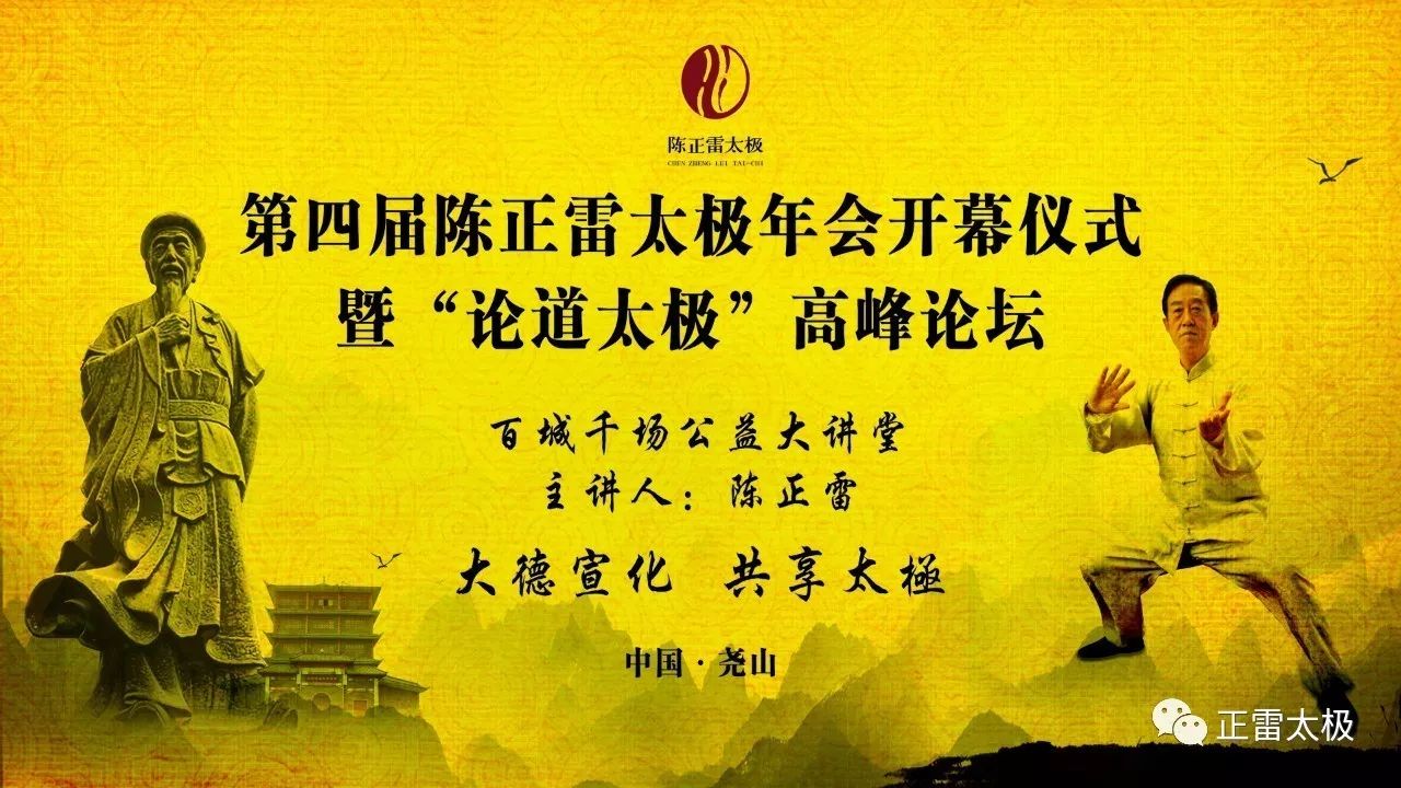 中华民族伟大复兴中的今天,作为承载中华太极文化的独特技艺,太极拳早已被百姓口碑相传。放眼天下,无数太极拳传承者的身影也已遍布四海。太极拳无形中成了连接不同种族、不同民族、不同语言、不同国家的文化纽带,为数亿人带去了健康的福音!值此第四届陈正雷太极年会盛大开幕之际,陈正雷太极体系所有同仁,再次向世界宣告,太极拳是属于全人类的瑰宝!当为世人所共享!