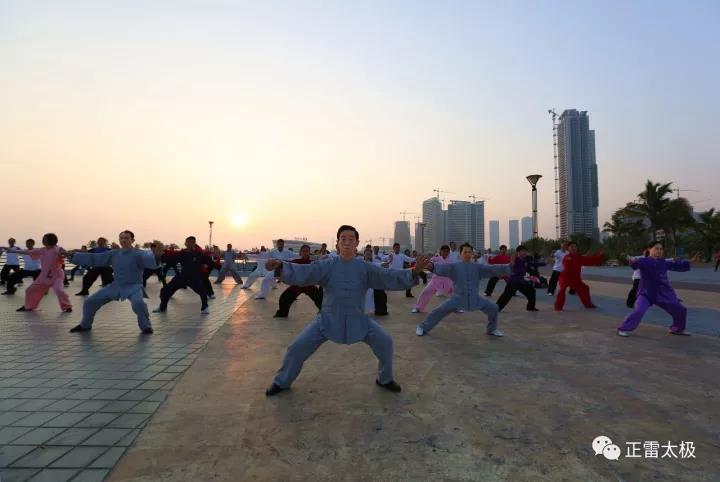 10月30日清晨六点,中国北部湾太极之光冬令营的成员聚集在海天一色的金沙湾,在陈正雷宗师的带领下展演太极拳,助力北部湾城市健身文化节的成功举办!