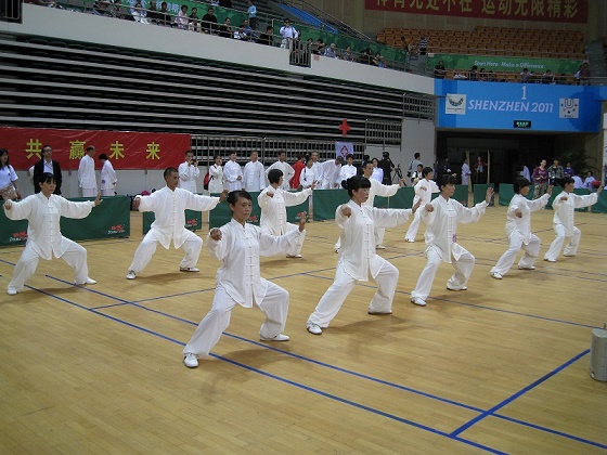 太极剑(49式),太极刀(23式),太极双剑,太极双刀,春秋大刀,太极抢,太极推手等。